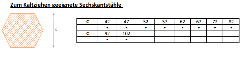 ◊ KALTGEZOGEN • Rund von 5 bis 40 mm, • Sechskantig von 10 bis 32 mm, • Vierkant von 10 bis 32 mm • in Handels- oder fixe Längen • standard Toleranz h9, h10, h11