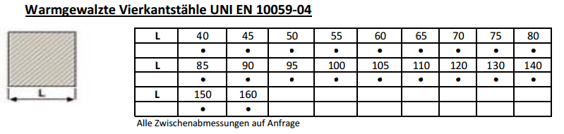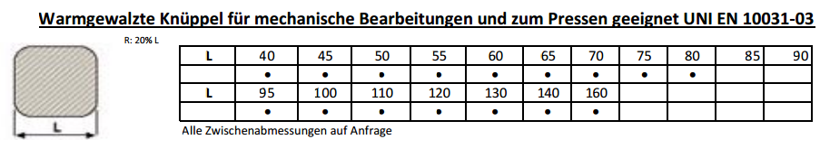 Immer vorrätige Güten in Handelslängen: S235JR-J0, S275JR-J0, S355JR-J0-J2 , C45